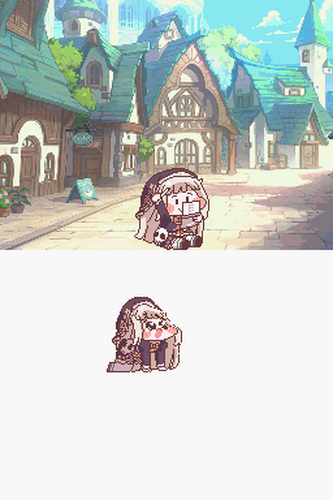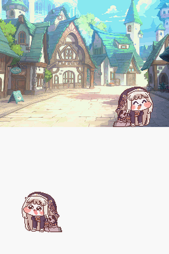 All other art assets (voice clips and the background on the top screen) are from the original game. Though I did fix up the background a little bit by hand to look a bit more presentable at a low resolution with a limited color palette.
